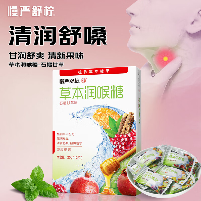 包邮 慢严舒柠润喉糖薄荷糖罗汉果清凉护嗓滋润草本咽喉糖教师节礼物口香糖 石榴甘草味20g*1盒